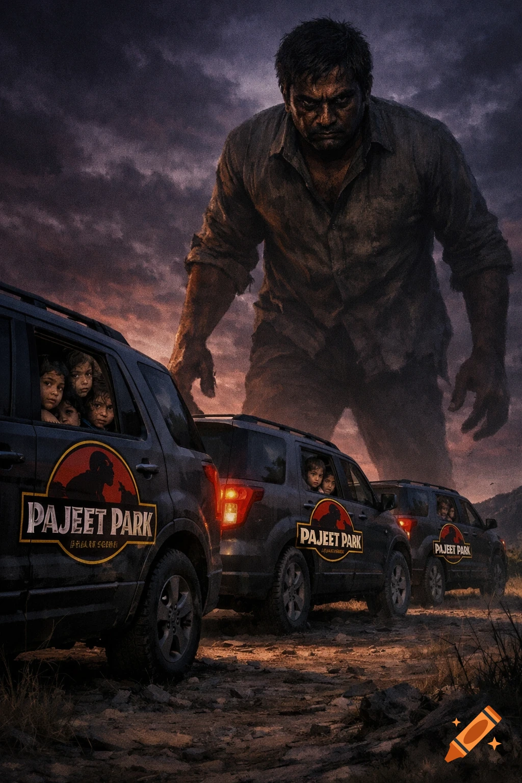 [WHITE CHILDREN hide in truck as GIANT TURD approaches]